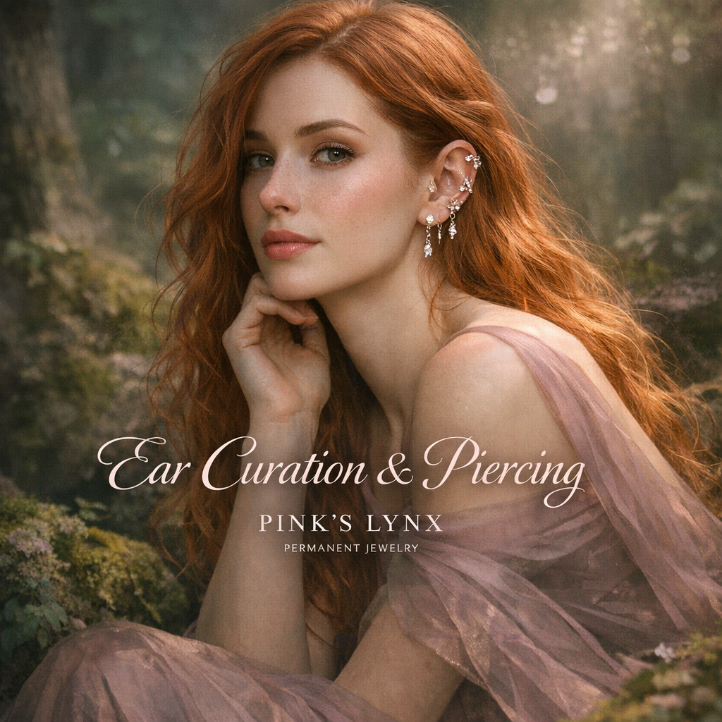 Welcome to Pink’s Lynx Permanent Jewelry, specializing in permanent jewelry, ear curation, and piercing. We offer a relaxed, one-on-one experience where your style and comfort come first. Whether you’re marking a special moment or elevating your everyday look, we create timeless adornments that feel personal and effortless.